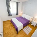 Az Apartmani Paradise apartman hálószobáiban párnák, tollpárnák és ágynemű biztosítottak. Zuhanyzó, fürdőlepedők és törölközők szerepelnek a fürdőszobai kínálatban.